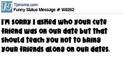 X says I'm sorry I asked who your cute friend was on our date but that should teach you not to bring your friends along on our dates.