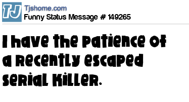 X says I have the patience of a recently escaped serial killer.