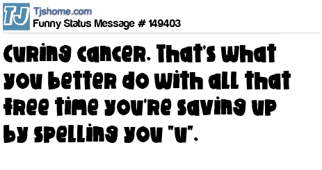X says Curing cancer. That's what you better do with all that free time you're saving up by spelling you "u".