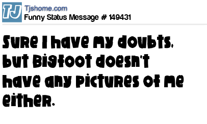 - # 210658 Sure I have my doubts, but Bigfoot doesn’t have any pictures of me either.