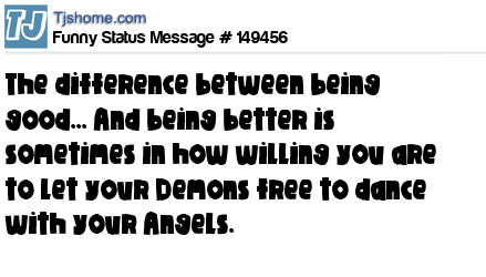 X says The difference between being good... And being better is sometimes in how willing you are to let your Demons free to dance with your Angels.