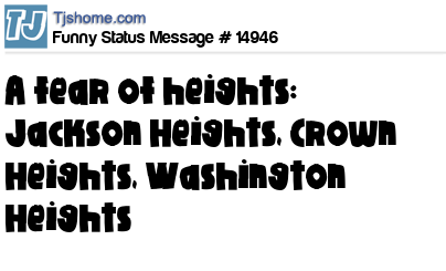 X has a fear of heights: Jackson Heights, Crown Heights, Washington Heights