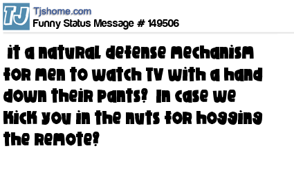 X says it a natural defense mechanism for men to watch TV with a hand down their pants? In case we kick you in the nuts for hogging the remote?