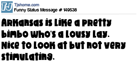 X says Arkansas is like a pretty bimbo who's a lousy lay. Nice to look at but not very stimulating.