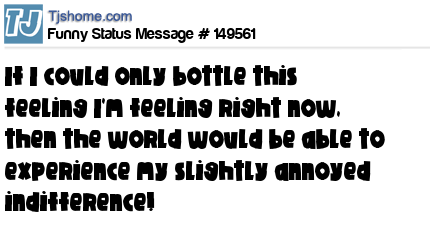X says If I could only bottle this feeling I'm feeling right now, then the world would be able to experience my slightly annoyed indifference!