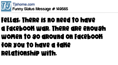 X says Fellas; There is no need to have a Facebook war. There are enough women to go around on Facebook for you to have a fake relationship with.