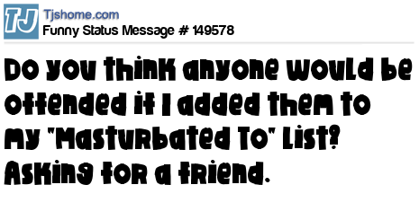 X says Do you think anyone would be offended if I added them to my "Masturbated To" list? Asking for a friend.