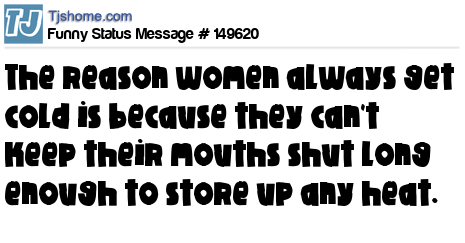 X says The reason women always get cold is because they can't keep their mouths shut long enough to store up any heat.