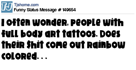 X says I often wonder, people with full body art tattoos. Does their $hit come out rainbow colored. . .