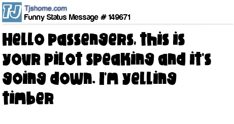 X says Hello passengers, this is your pilot speaking and it's going down. I'm yelling timber
