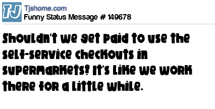X says Shouldn't we get paid to use the self-service checkouts in supermarkets? It's like we work there for a little while.