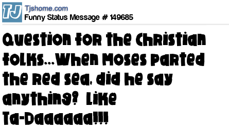 X says Question for the Christian folks...When Moses parted the red sea, did he say anything? Like Ta-Daaaaaa!!!