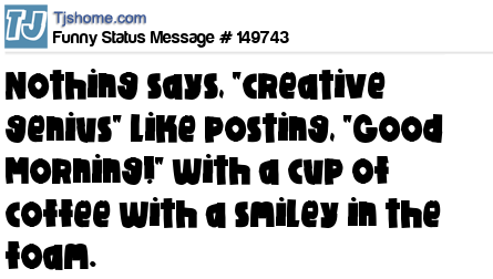 X has Nothing says, "creative genius" like posting, "Good Morning!" with a cup of coffee with a smiley in the foam.