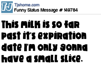 X says This milk is so far past it's expiration date I'm only gonna have a small slice.