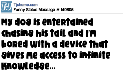 X says My dog is entertained chasing his tail and I'm bored with a device that gives me access to infinite knowledge...