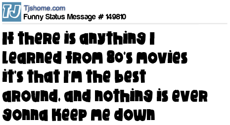 - # 131307 If there is anything I learned from 80's movies is that I'm the best around.. and nothings ever gonna keep me down.