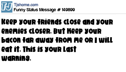 X says Keep your friends close and your enemies closer. But keep your bacon far away from me or I will eat it. This is your last warning.