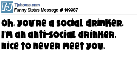 X says Oh, you're a social drinker, I'm an anti-social drinker, nice to never meet you.