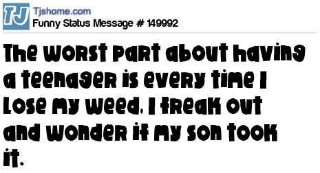 X says The worst part about having a teenager is every time I lose my weed, I freak out and wonder if my son took it.