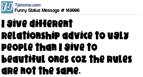 X says I give different relationship advice to ugly people than I give to beautiful ones coz the rules are not the same.