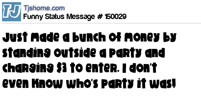 X says Just made a bunch of money by standing outside a party and charging $3 to enter. I don't even know who's party it was!