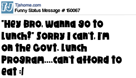 X "Hey Bro, wanna go to lunch?" Sorry I can't, I'm on the Govt. Lunch Program....can't afford to eat :/
