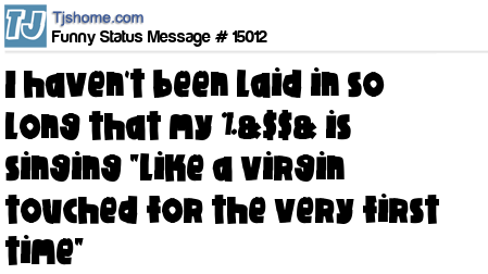 X I haven't been laid in so long that my %&$$& is singing "Like a virgin touched for the very first time"