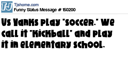 - # 25246 You see in America, Soccer is usually a game for kids who are too small or too untalented to play baseball or football. I mean, hell, even HogWild played Little League baseball so that should tell something about the talent pool of kids left over to play