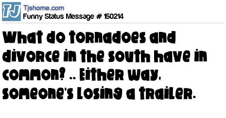 X says What do tornadoes and divorce in the south have in common? .. Either way, someone's losing a trailer.