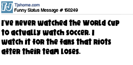 X says I've never watched the World Cup to actually watch soccer. I watch it for the fans that riots after their team loses.