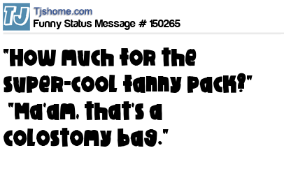 X says "How much for the super-cool fanny pack?" "Ma'am, that's a colostomy bag."