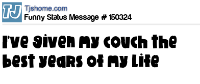 - # 48675 I didn't ditch you for the couch... I was already on my couch!! That means I would've been ditching my couch for you!