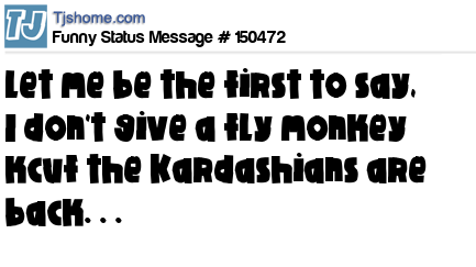X says Let me be the first to say, I don't give a fly monkey kcuf the Kardashians are back. . .