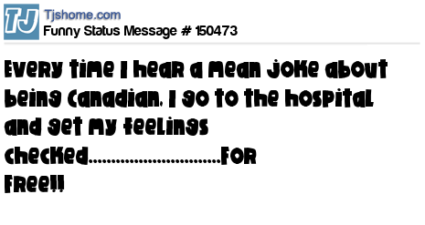X Every time I hear a mean joke about being Canadian, I go to the hospital and get my feelings checked.............................For Free!!