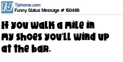 X says If you walk a mile in my shoes you'll wind up at the bar.
