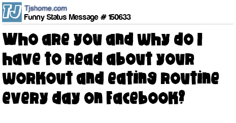 X Who are you and why do I have to read about your workout and eating routine every day on Facebook?