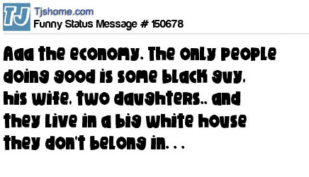 X says Aaa the economy. The only people doing good is some black guy, his wife, two daughters.. and they live in a big white house they don't belong in. . .