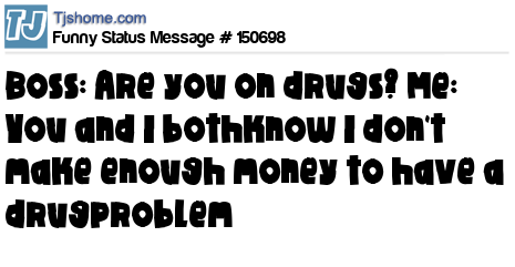 X says Boss: Are you on drugs? Me: You and I bothknow I don't make enough money to have a drugproblem