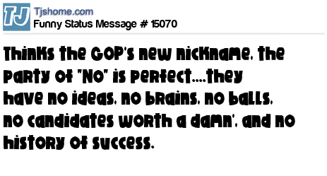 X  thinks the GOP's new nickname, the party of "No" is perfect....they have no ideas, no brains, no balls, no candidates worth a damn', and no history of success.