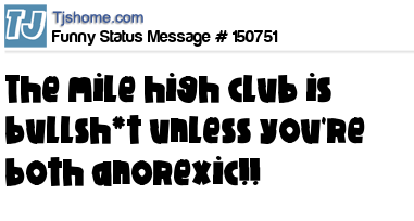 X says The mile high club is bullsh*t unless you're both anorexic!!