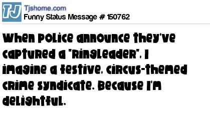 X says When police announce they've captured a "ringleader", I imagine a festive, circus-themed crime syndicate. Because I'm delightful.