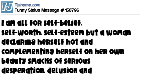 X says I am all for self-belief, self-worth, self-esteem but a woman declaring herself hot and complementing herself on her own beauty smacks of serious desperation, delusion and self-conceit.