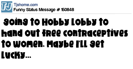 X says going to Hobby Lobby to hand out free contraceptives to women. Maybe I'll get lucky...
