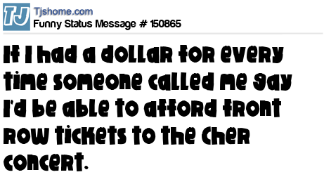 X says If I had a dollar for every time someone called me gay I'd be able to afford front row tickets to the Cher concert.