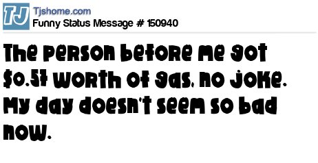 X says The person before me got $0.57 worth of gas, no joke. My day doesn't seem so bad now.