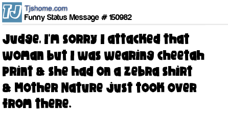 X says Judge, I'm sorry I attacked that woman but I was wearing cheetah print & she had on a zebra shirt & Mother Nature just took over from there.