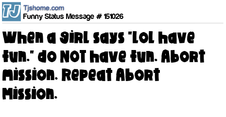 X says When a girl says "lol have fun." do NOT have fun. Abort mission. Repeat Abort Mission.