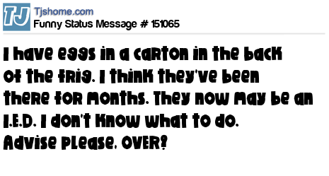 X says I have eggs in a carton in the back of the frig. I think they've been there for months. They now may be an I.E.D. I don't know what to do. Advise please, OVER?