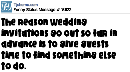 X says The reason wedding invitations go out so far in advance is to give guests time to find something else to do.