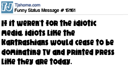 X says If it weren't for the idiotic media, idiots like the Kartrashians would cease to be dominating TV and printed press like they are today.